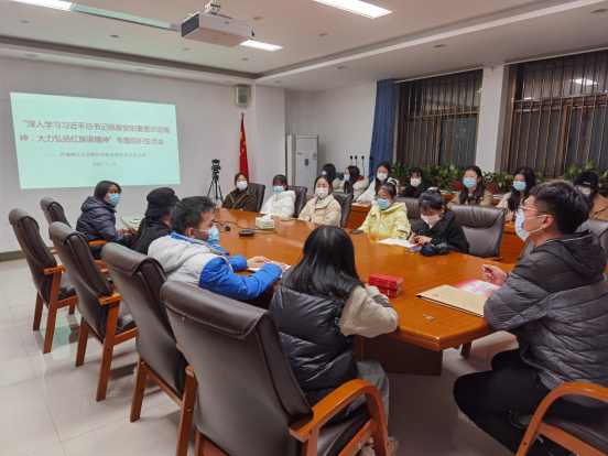 为深入学习宣传贯彻党的二十大精神和习近平总书记视察安阳重要讲话精神,11月21日晚,伟德国际1946官网本科生第五党支部组织全体党员在2102会议室,开展“深入学习习近平总书记视察安阳重要讲话精神,大力弘扬红旗渠精神”专题组织生活会。会议由党支部书记李岐峰主持。